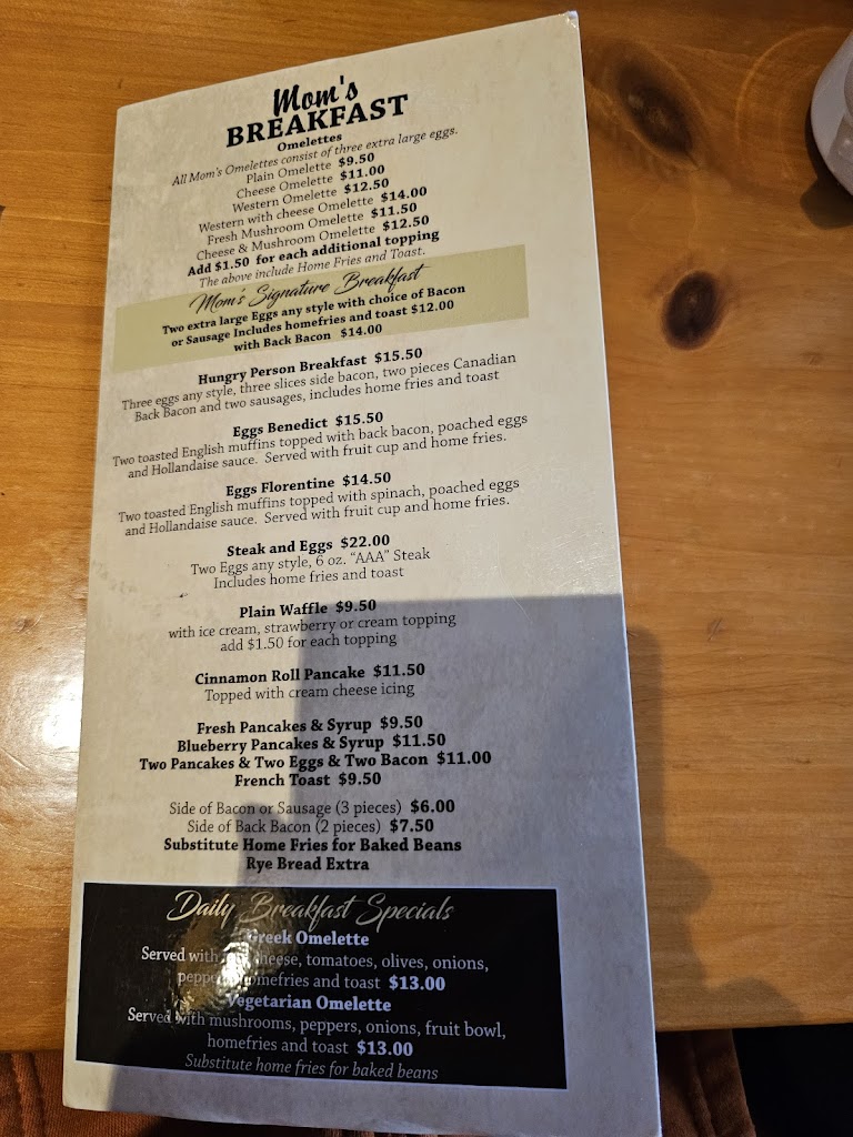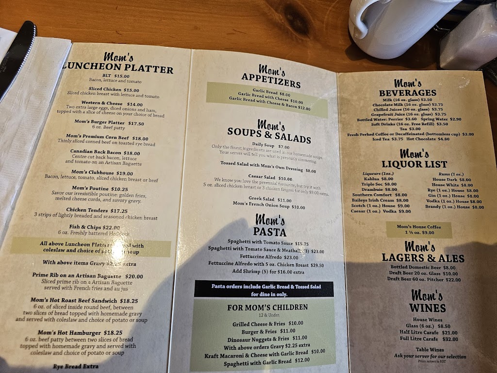 Moms Restaurant is fantastic! We had breakfast, and everything was excellent. The food is tasty, and the prices are great. It has a friendly Canadian vibe. Well definitely come back!