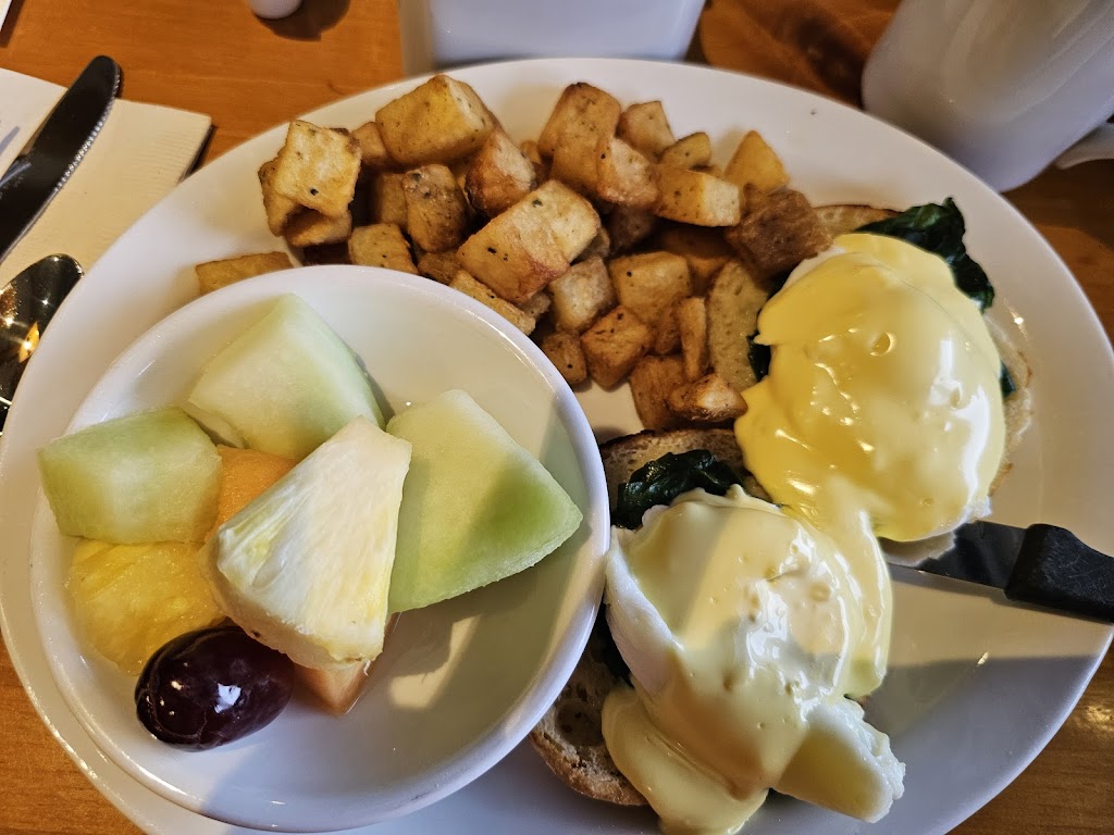 Solid breakfast spot. If you re looking for a staple breakfast meal, this is the place to come. The staff were very friendly and we were super satisfied with our brunch. Highly recommend the eggs florentine and cinnamon roll pancakes.