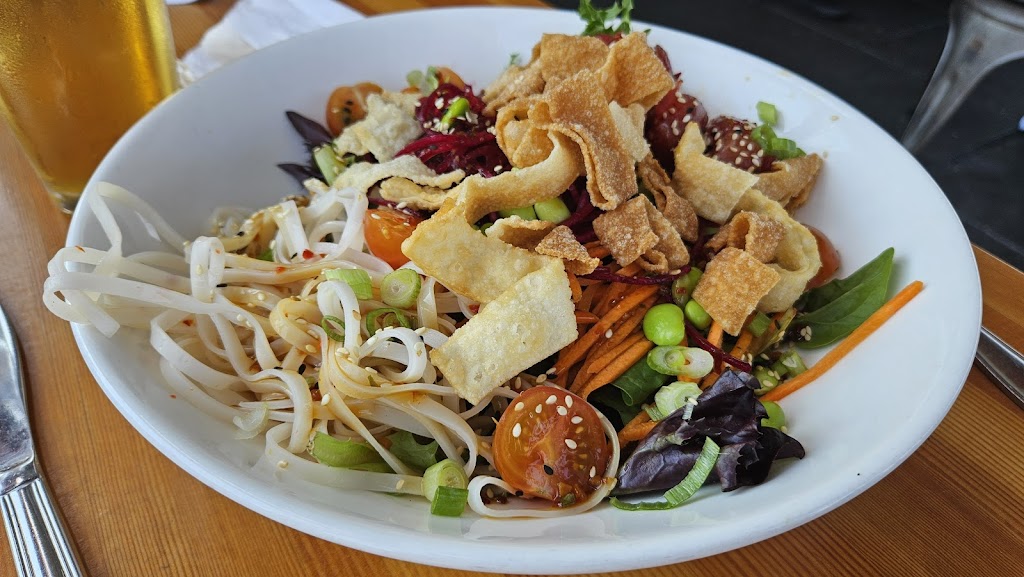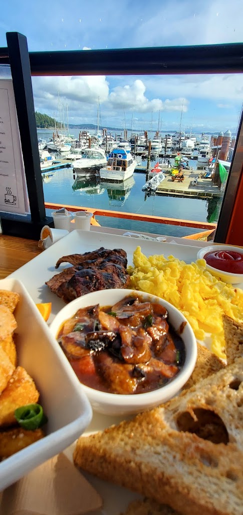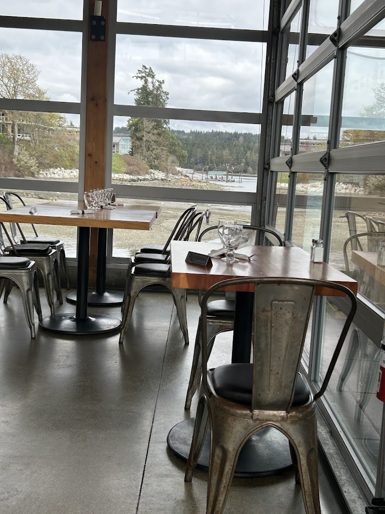 Smaller place but not overly crowded seating. Has a semi outdoor feel as back area doesnt have solid walls. Right on the dock so completely water view. Nice westcoast style bar with seating. The server was friendly and fairly attentive but busy. Not a large menu but varied, adequate sized servings and tasty. Dietary restrictions: Gluten free and vegan food options. Wheelchair accessibility: No steps from parking and on dock. Chairs movable to seat a chair
