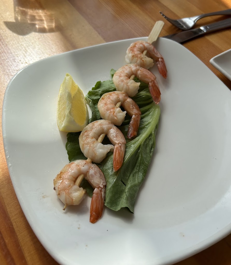 TERRIFIC salmon-shrimp cakes in a lovely setting. Highly recommended!