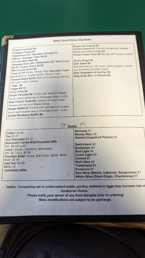 Ways love coming here.....for years now ! I moved to VT. In 2009 and I have always loved coming here for breakfast or lunch and even dinner !!!! They are now under new ownership but so far doesnt seem to be affecting the quality of anything, except I do notice not as many desserts but still good ones , the ones they do have!! Itd be a 5 if it hadnt changed ownership. The blonde waitress that has been there forever is an absolute sweetheart and will always be attentive and heartfelt...not something you always get with a server.....all in all I like it there a lot personally.