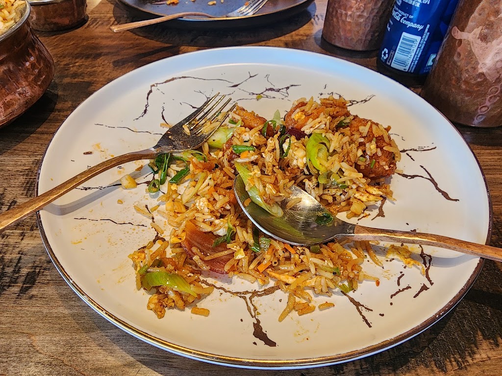 This place takes time. Its a small place with a small crew so things aren't ready immediately. We got the shrimp fried rice and the ghee roast mutton biriyani as mutton Dum biriyani wasn't available. The rice portion size was good however the biriyani had 4-5 pieces out of which 3 were just bones and 2 were fat. For the price charged for the biriyani I hardly got a taste of the mutton. Both the dishes tasted good though. Fried rice tasted good and the shrimp tasted fresh and crunchy, the portion size was big too. Infact this is one of the nicest tasting hyderabadi biriyanis I have had in Canada. The biriyani saved the place otherwise I would give it a 3. Service and meat portion size however needs improvement.