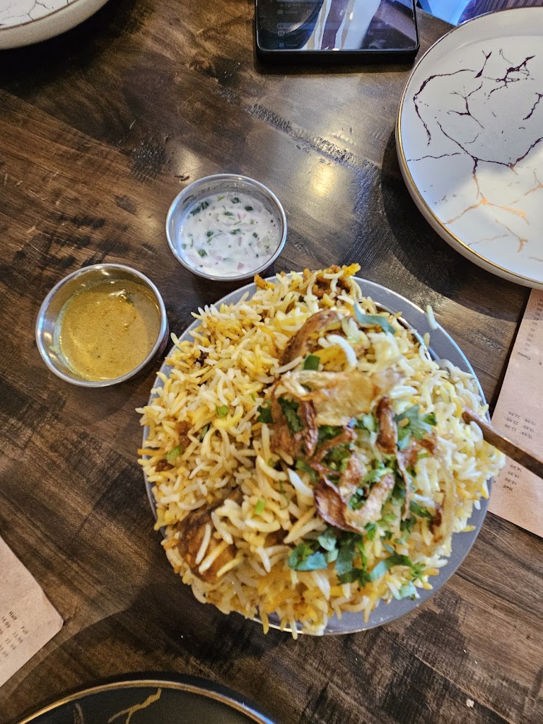 The food was really good. Biriyani and Saaln on point. Kodi Pakodi is great. The chef is doing a really great job. Reminded me of my time in Hyderabad. Also Raman was very friendly and hospitable.