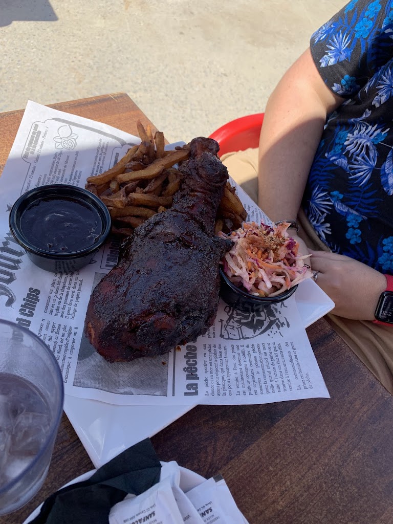2nd time I went to eat at the head. We arrived at 6 p.m., the waiter took our drink orders. We receive them at 7 p.m. (he takes our meal orders at this time) we receive our meals 1 hour and a half later, at 8:30 p.m. Delicious turkey drumstick, beef and very good pulled meat. Side too spicy for my taste, ordinary salsa. Very good fries. Cold sauce, salad without vinaigrette. Excellent drinks and beers. Unfortunately I would not return. You want a good smoked meal, and good, fast service go to Jack Flat in Laval.