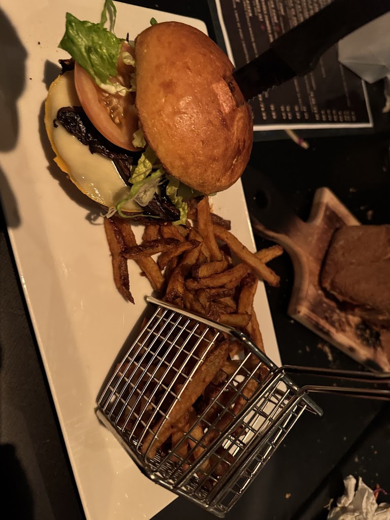 Really a hamburger steak for $25 a meatball with 3 onions and cauliflower?? Who eats cauliflower with a hamburger steak? There are lots of kinds of mushrooms at the market Really and fish and chips cooked in old oil which just tastes greasy and overcooked fries which are greasy black would have to change the oil very disappointed and much too expensive for the quality. Last time for us sorry.