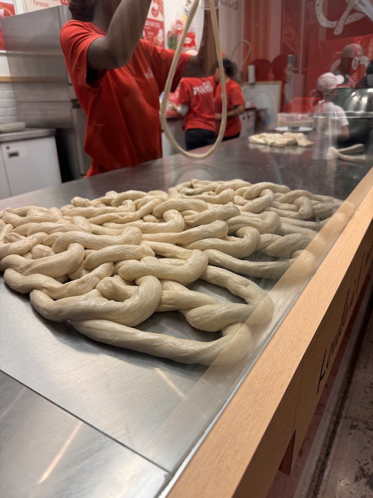 The atmosphere and the workers, OMG, they are the best. I bought a sugar cinamon pretzel and it was warm and so good, it touched my soul. I definitley recommend other to come try. 10/10