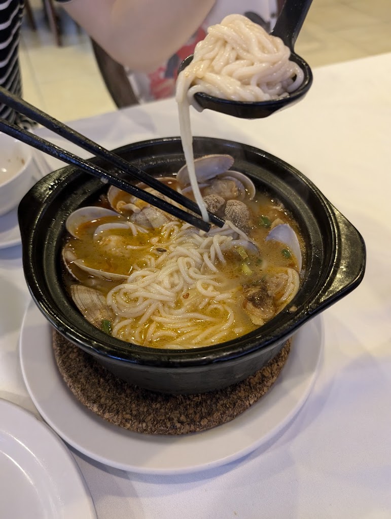 I'm not usually a clam gal so was very surprised to find out I enjoyed the spicy clam noodle soup. Came here for the lamb skewers and they did not disappoint, so good! The dumplings tasted like they were homemade, which is still yummy but I probably won't get them again next time, can just get them from my fam. The complimentary dessert in the end was a really nice, refreshing wrap-up to the meal.