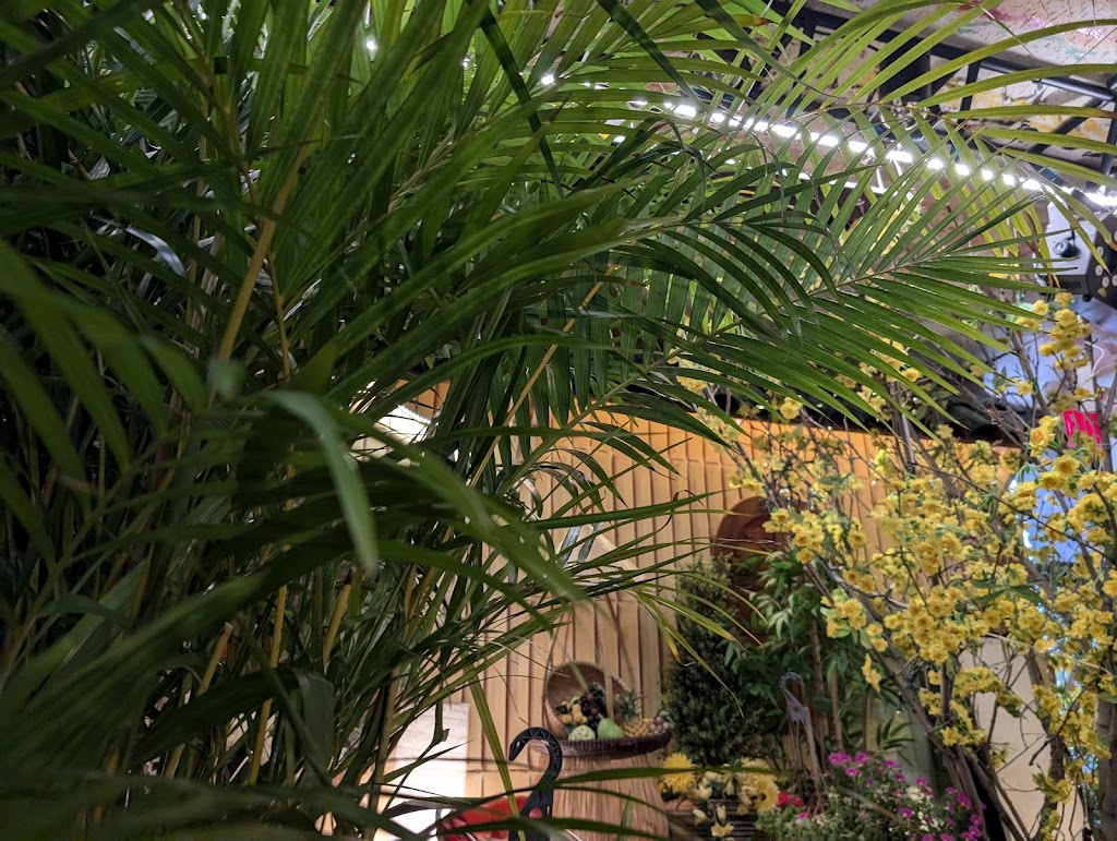 The exterior of this place is simply breathtaking, with vibrant flowers and lush greenery setting the perfect tone. As soon as you step inside, you’re transported into a tranquil, blue-lit garden atmosphere that feels magical. The wait staff is impeccably dressed, polite, and efficient, adding to the classy vibe. The tables are beautifully set, and the complimentary tea they serve as soon as you’re seated is absolutely delicious. The menu is incredible, with a wide array of options and visuals that make choosing a dish both easy and exciting. I opted for the classic BBQ chicken vermicelli, substituting a vegetarian spring roll, and I was blown away. The portion size was enormous, and the flavors were out of this world. The unique ordering system adds to the charm—you write down your choice, and they deliver it right to your table. When you’re finished, you simply pay at the register. It’s such a fun and seamless experience. The music was also on point, creating the perfect ambiance. Overall, an amazing meal in a beautiful setting!