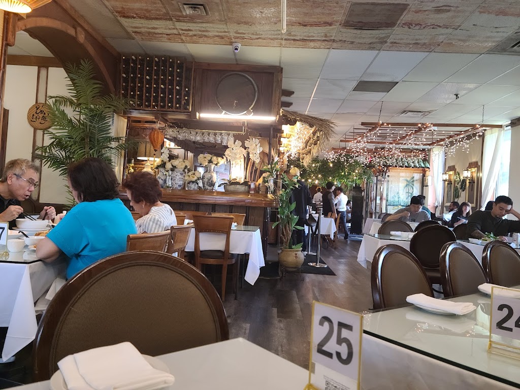 This is my favourite spot to get pho in Mississauga. The food is amazing, huge portions (me and my friend couldn t finish it) they play very soft classical music, the dim warm lighting from the string lights; and the beautiful decor make the ambience perfect. If you come here I reccomend the beef pho + the milk tea