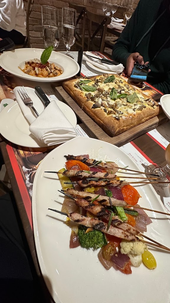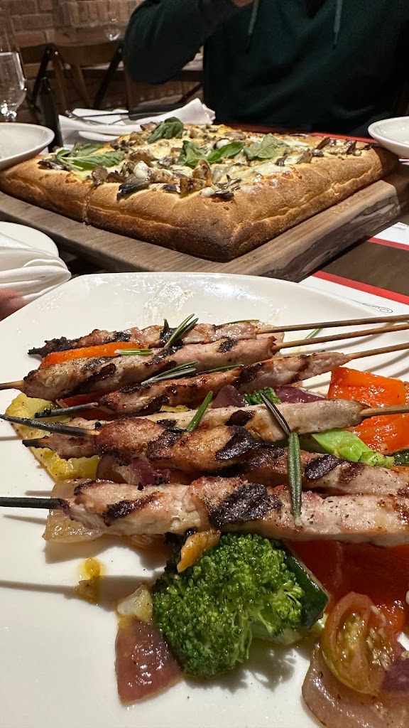 I give it the two stars only because the service was decent. I ordered the pork skewers and felt it was a complete waste of money as it was just a plate of vegetables and skinny skewers of meat which was over cooked. It should have been a bit more generous with the portion of meat considering it was a $28 plate. I feel overall the food itself was overpriced and not receiving moneys worth. Pizza was alright and was fluffy which I enjoyed. But also not worth it. I would recommend maybe trying out another spot. I also don’t think I’d go here again.