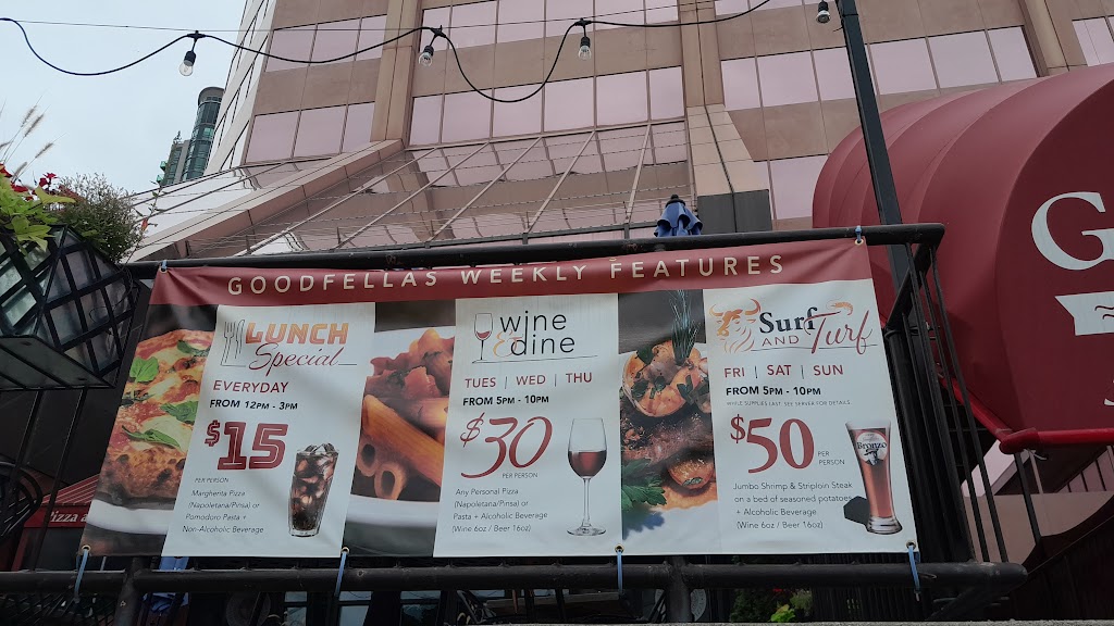 Had a wonderful time as a first time customer at Goodfellas, (Burnhamthorpe) Mississauga! Food, Service and Atmosphere were top notch. Validated free underground parking just made it that much better. A little bit pricey for pizza but definitely worth it! Parking: Visitor Parking provides 1 hour free then Goodfellas validates your parking ticket for 2 hours.