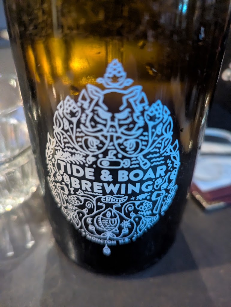 I have not been up the east coast through Moncton for a few years before COVID so I was elated to see this local gastropub had survived the decimating affect of that crazy time. In addition, I has so pleased to hear that they have excelled in these years and moved the basement brewery outta the lower floor and into a bigger facility further into town. (NEXT TIME!!!!!) A walk on a cold and drizzly March evening was rewarded by the energy of the crowded rooms and the flavours wafting out of the kitchen. Some of THE TIDE pilsner accompanied my BOAR BOARD of delectable house-cured meats and pates. Textures and flavours unique to me and certainly enjoyable. I am only sad that my capacity for food is not what it was but i will return next time FAMISHED and gorge myself. Thanks to all for a wonderful evening.