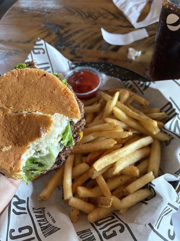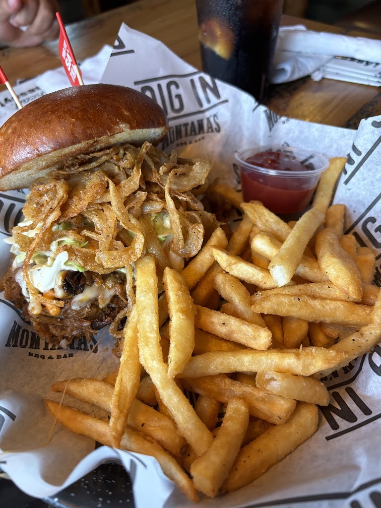 I wish this montanas had the coloring tables like most montanas do. I got a gluten free bun but it was so dry that it turned to sand when you bite into it; it broke when i picked it up. The fries werent crispy and the burger was sorta like a mcdonalds burger with one single piece of lettuce. I used to really like montanas so I hope shrinkflation doesn't keep affecting things the way it is right now. According to my boyfriend the cornbread was amazing tho