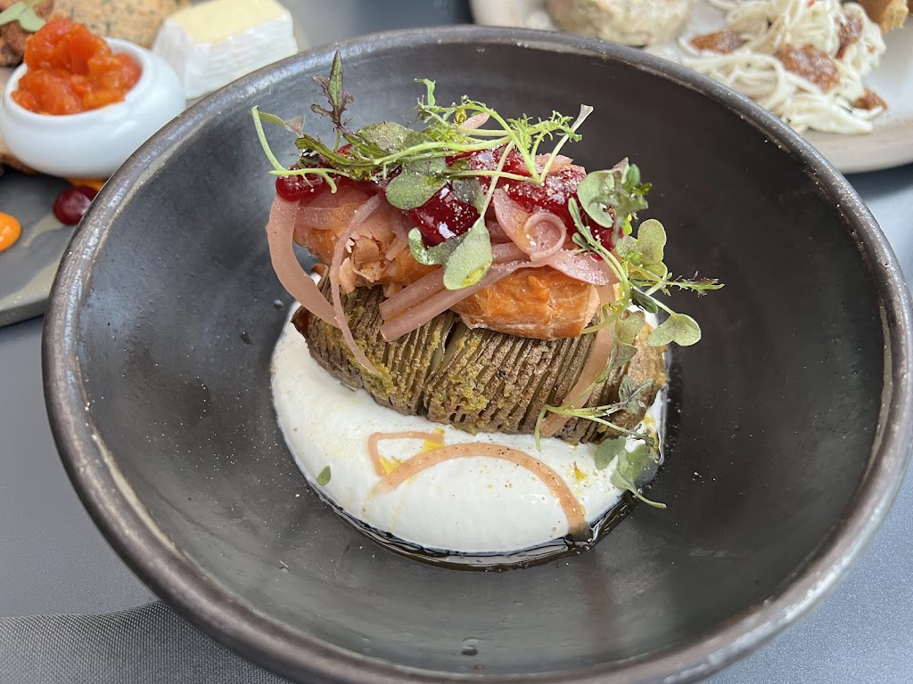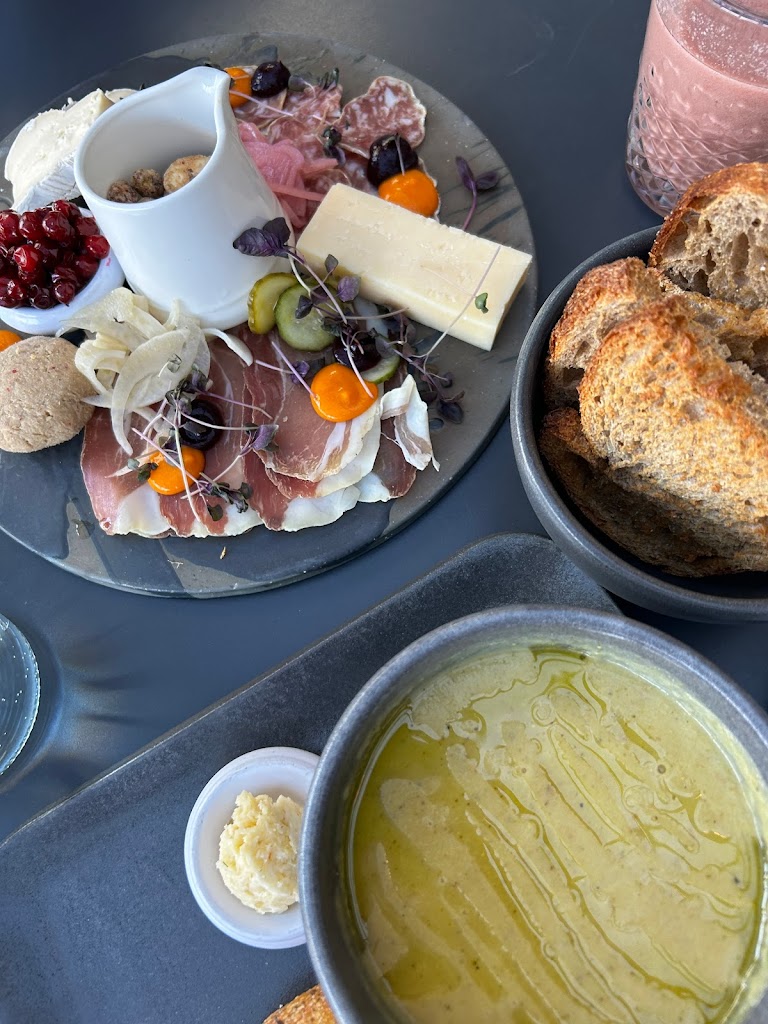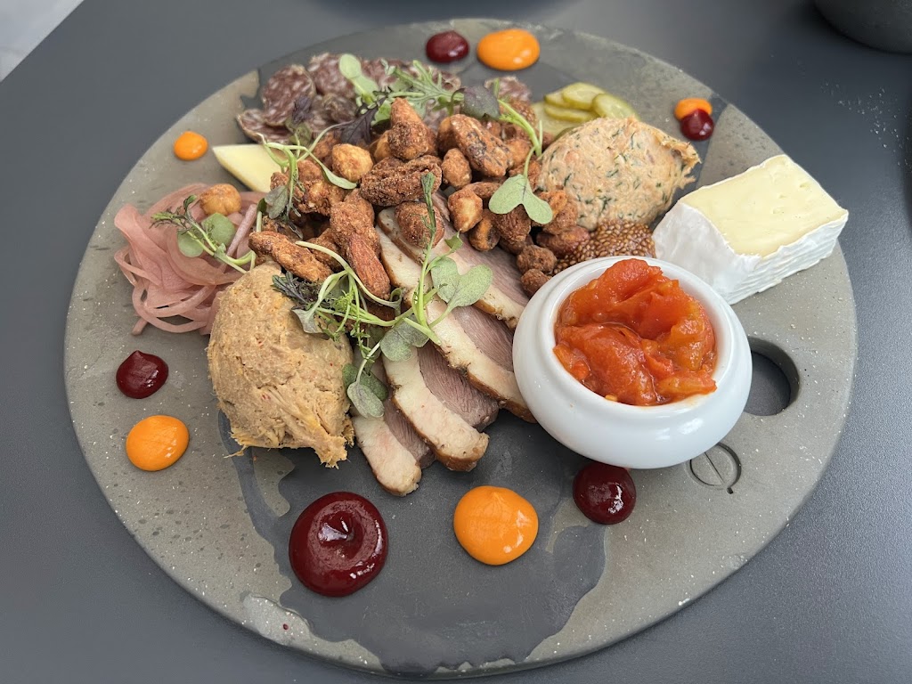Restaurant au coeur du strom spa. Bien accueilli, bon service et explication du menu et des plats du jour. Nous avons opté pour la soupe du moment qui étais crème de maïs, succulente soit dit en passant suivi de l'entrée à partager l'artisan. Suffisante pour deux, une journée de spa. Nous avions pas asse faim pour un plat de résistance donc l'entrée à partager étais un choix parfait dans notre cas. Prix résonable et les saveurs étais aux rendez-vous. Osez, essayer et découvrez cet endroit. *je n'avais pas mon téléphone, donc aucune photo cette fois-ci.