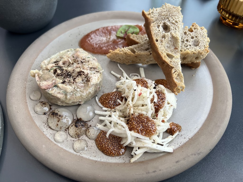 My partner and I each got the table d'hôte (appetizer, entree & dessert of choice for $49) and shared. Everything was unique and delicious, and the portions were very reasonable given the quality and price. I love that they use local seasonal ingredients in a creative way. The vibes of the meal really continued and enhanced the relaxed luxury of the spa experience. Our waiter was super friendly (young man with dark hair, I think his name started with an A?) and the food came out fast.