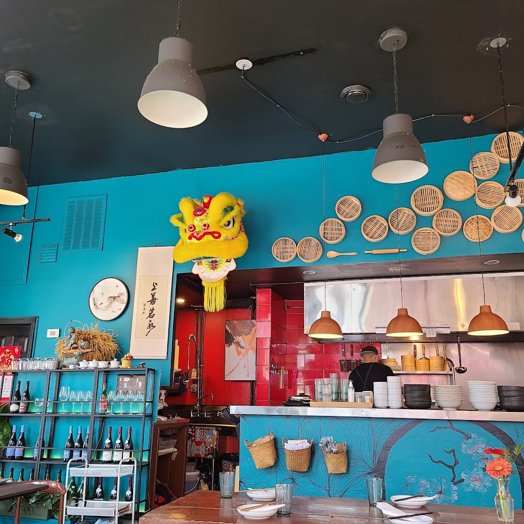 So delicious! What a little gem of a place! The chicken peanut noodles and the meat dumplings were so incredibly tasty!! The torched salmon bowl was a whole show that was so entertaining to watch and delicious to eat. Plus they have bottles of nice wine for very reasonable prices. Good portions! The staff is very friendly. Very small space though so arrive early to guarantee a table. Vegetarian options: Vegetarian dumplings available