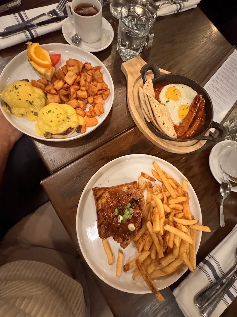 Solid and easy food, very tasty. Food: we got the fried chicken and veggie benedict - very solid. Their fries are good. Atmosphere: chique pub Service: attentive and kind