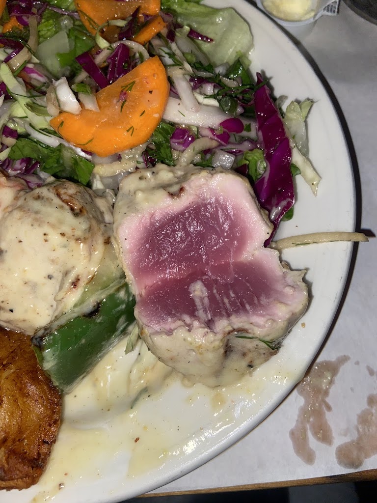 The food was good, but the service wasnt the best. They said that the mix plate included calamari, but it wasnt. He said it was their fault when we asked him again, but we were charged for it.