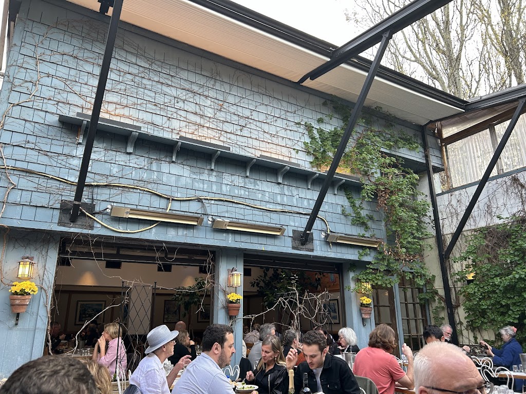 Dine on the restaurant s back terrace. Pleasant atmosphere at dinner time. Very good restaurant and very busy at dinner time.