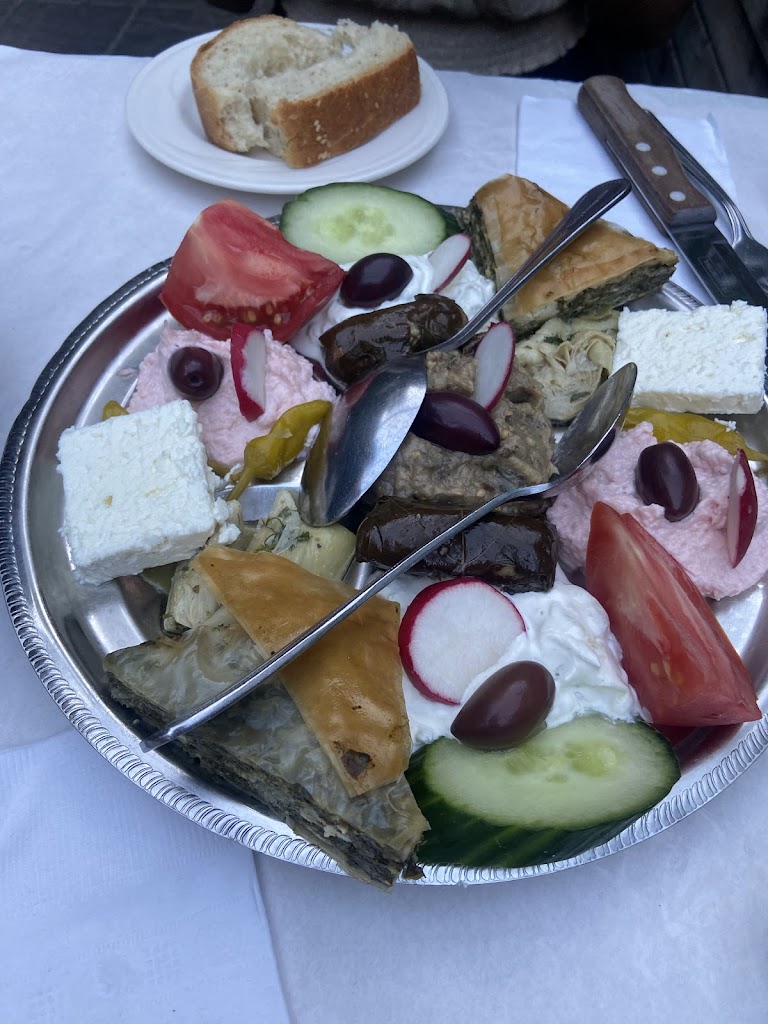 A greek restaurant with a very nice serving and selection of a tasty nice food