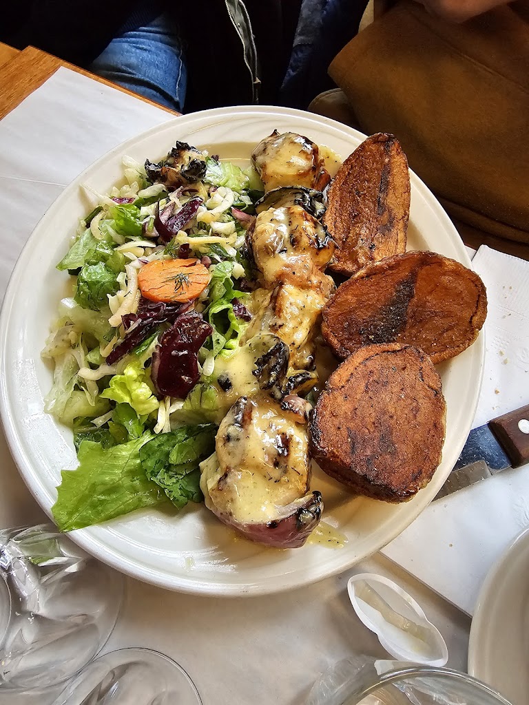 This is one of my favourite restaurants. I always have the 2 chicken skewers and I am never disappointed. The chicken is so tender, the salad is always so fresh and delicious. I like to order a side of tzatziki which is enough for 2 to share. The restaurant feels so authentic and is full of charm. I love sitting on the outside courtyard area. The restaurant has a great energy and I highly recommend it! Tip: make reservations! Dietary restrictions: Gluten friendly options Vegetarian options