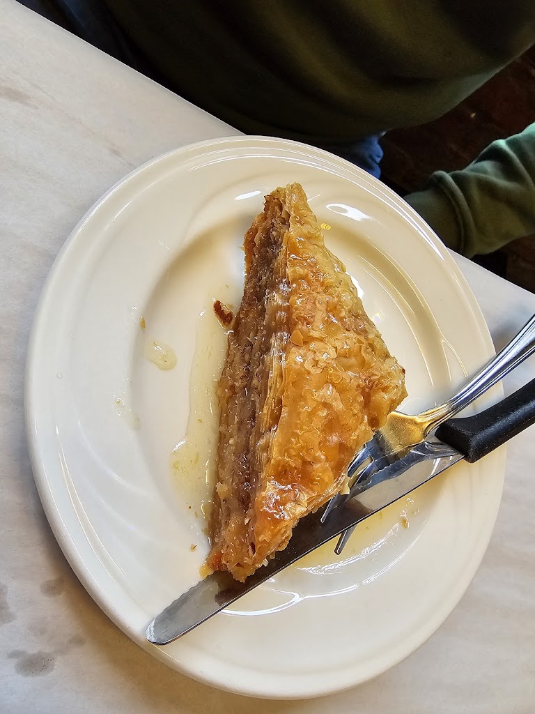 Spanakopita was ok. Baklava was delicious. Nice vibe with the indoor garden. Hot though.