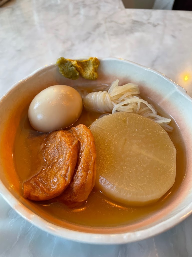 In take-out mode There were several things missing from their menu on Saturday lunchtime. Otherwise what I chose was excellent Simmered daikon, onigris and takoyakis Pleasant service Private import sake I cant wait for the restaurants to reopen so I can go back and have the real experience