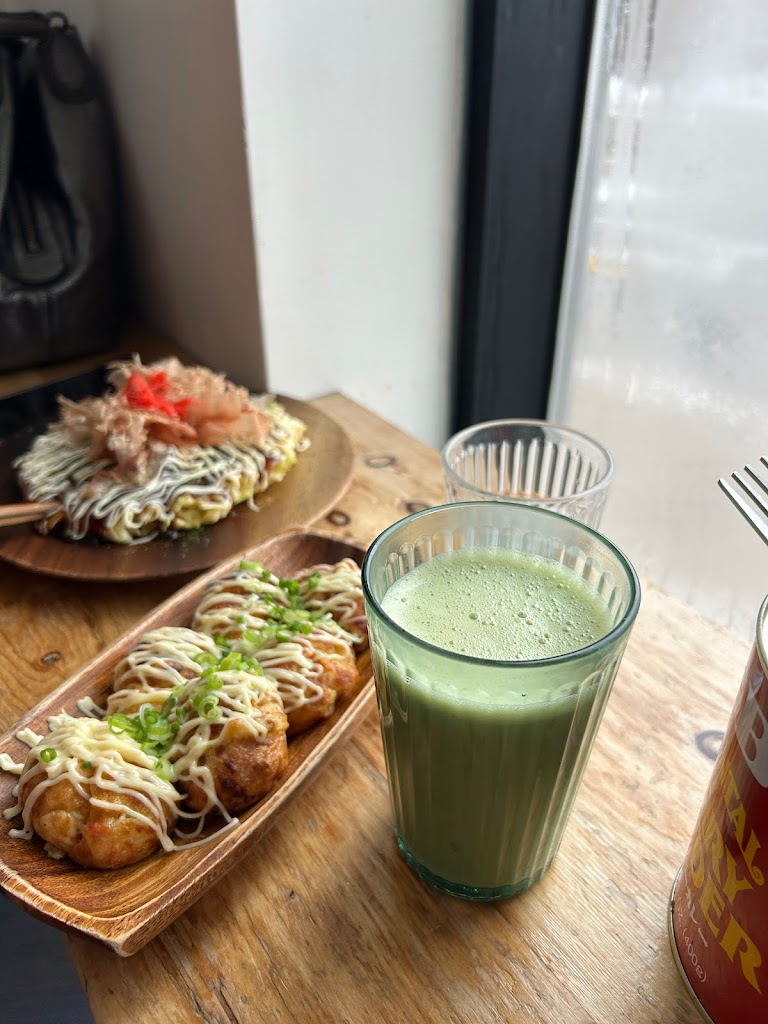 We tried okonomiyaki, takoyaki, yuzu lemonade and iced green tea. Everything was very good!