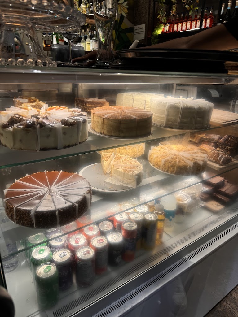 The atmosphere is great! Wonderful interior design. Food is average (don t know about desserts and coffee). Servers are nice, but I order cider and they brought me a can of cider and a beer glass. It was weird.