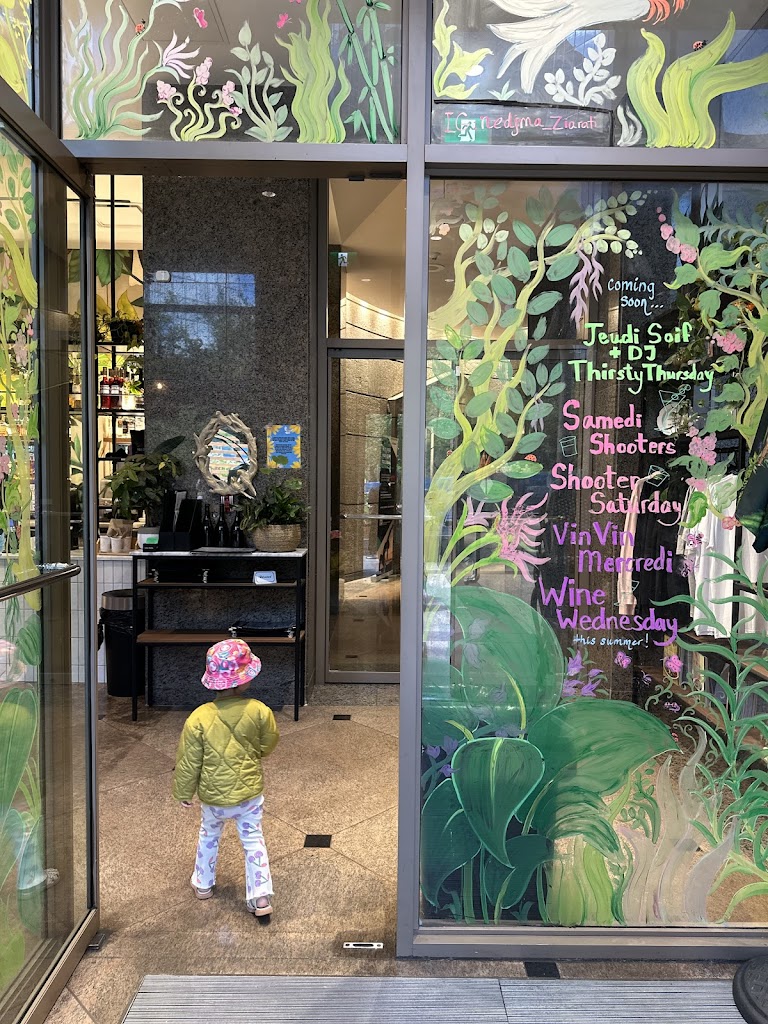 We asked what their recommendations are and were told their lox dishes are what they are known for, but also their Mediterranean toast is really good. And so we proceeded to order their recommendations, plus a mimosa and an iced espresso drink. And I’m so glad we did! The Mediterranean toast was an explosion of texture and flavours with their avocado spread, goat cheese, greens, chickpeas, radish and more! The smoked salmon toast with a poached egg was also delish, although the egg was a bit overcooked. The mimosa was made with freshly squeezed orange juice (at least I think it is). The interior is cute, very tropical with trees inside. I give Pigeon Cafe a thumbs up and it will be on rotation when in Montreal!