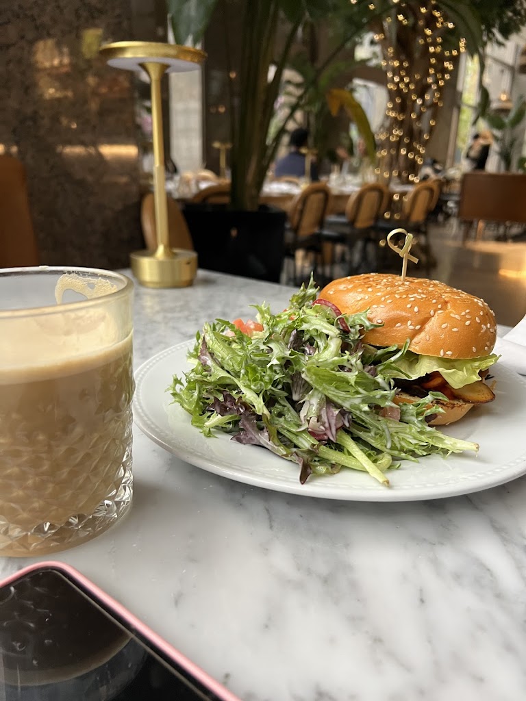 Ethereal cafe in downtown montreal! Came from Ottawa and easily found parking underground. The latte and cappuccino were delicious. I got the spicy chicken burger - not really spicy but that’s okay, the flavours were fresh and balanced. I loved the brioche bun & the salad portion was great. I didn’t try the baked goods but they looked yummy!