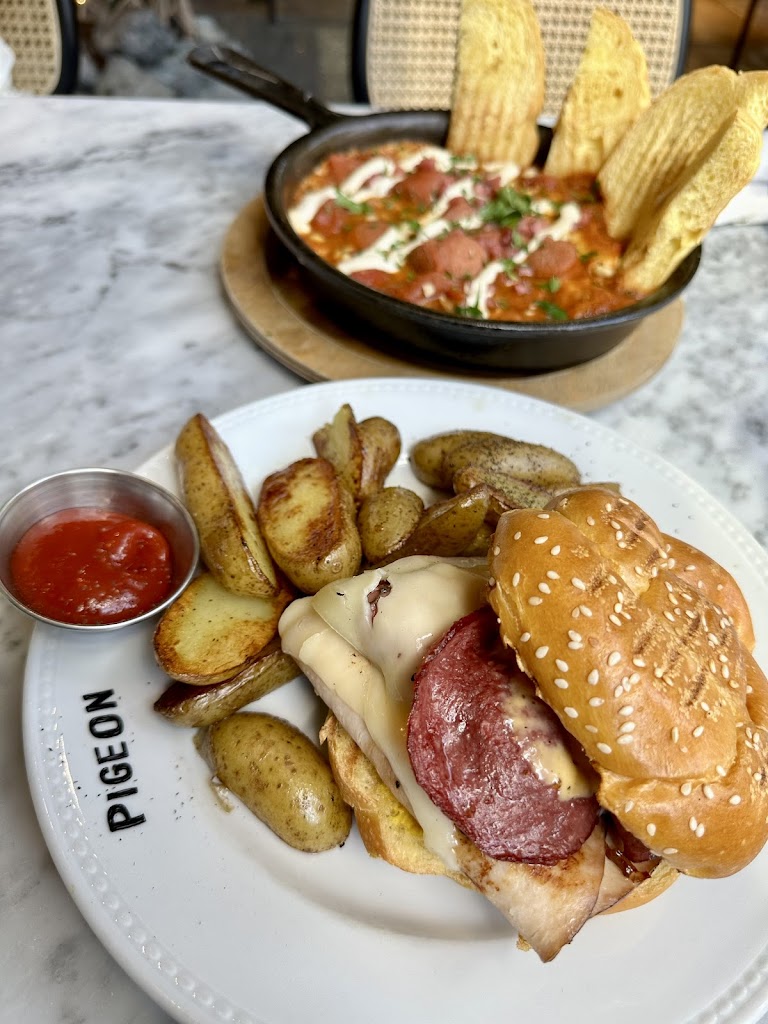 We had a great Sunday brunch at 10 AM. Super loved the ambience plus the slow Sunday feels. The servers were friendly and polite. The food is amazing! I especially loved their ‘The Pigeon Special,’ I wish I can have it three times a week! It was well seasoned and the mustard sauce blends all the meats together. Definitely recommend 15/10! Where we thoroughly enjoyed the sandwich, the shakshuka was another story. Don’t get me wrong, it’s also good. I just wished they put one or two more eggs. The tomatoes were ripe and perfectly seasoned. The mocha coffee was 5/5 good! Will order it again. The matcha latte, although refreshing, was a bit too milky for my taste. The ambience is just perfect for a get together over good food and drinks. :):):)