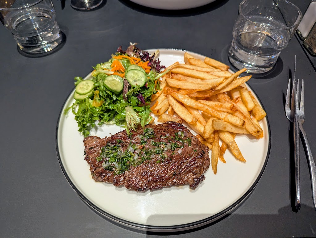Excellent dinner experience, we started the evening with a platter of assorted charcuterie, that really got our appetite going. For the main, we took the flank steak and duck, both dishes were tender and very flavorful. We ended the night with a creme brulee, which was big enough to share for 2! Last but certainly not the least, was the service. Our server did a phenomenal job taking care of us. He was attentive, friendly, and a professional. Will definitely come back!