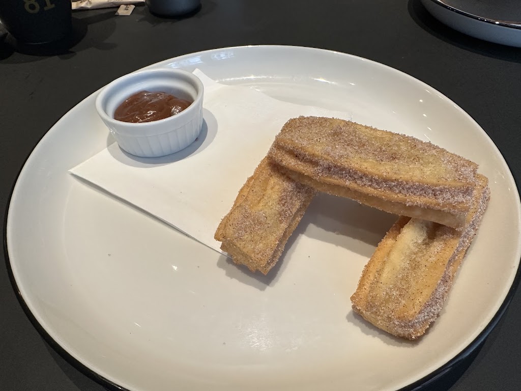 The creme brulee & crafted churro with artisan caramel chocolate sauce was a divine way to conclude a wonderful experience. The caramelized sugar crust atop the brulee was pleasing to crack and eat, and the treat below the surface: wonderful. The churro was light, and the light zip by cinnamon and sugar perfect, the caramel chocolate sauce paired well. The salmon eggs Benedict was simply stunning! The hollandaise sauce more savory than buttery sweet went well with the salmon, as did the chefs choice of bread instead of traditional english muffin: bliss! The chef stopped by our table—they handcraft their sausage, which I tasted from my wife’s dish, wonderfully dense with flavour. Be sure to order a macchiato and/or a latte, smooth—yet rich! Will return when back in town, merci!