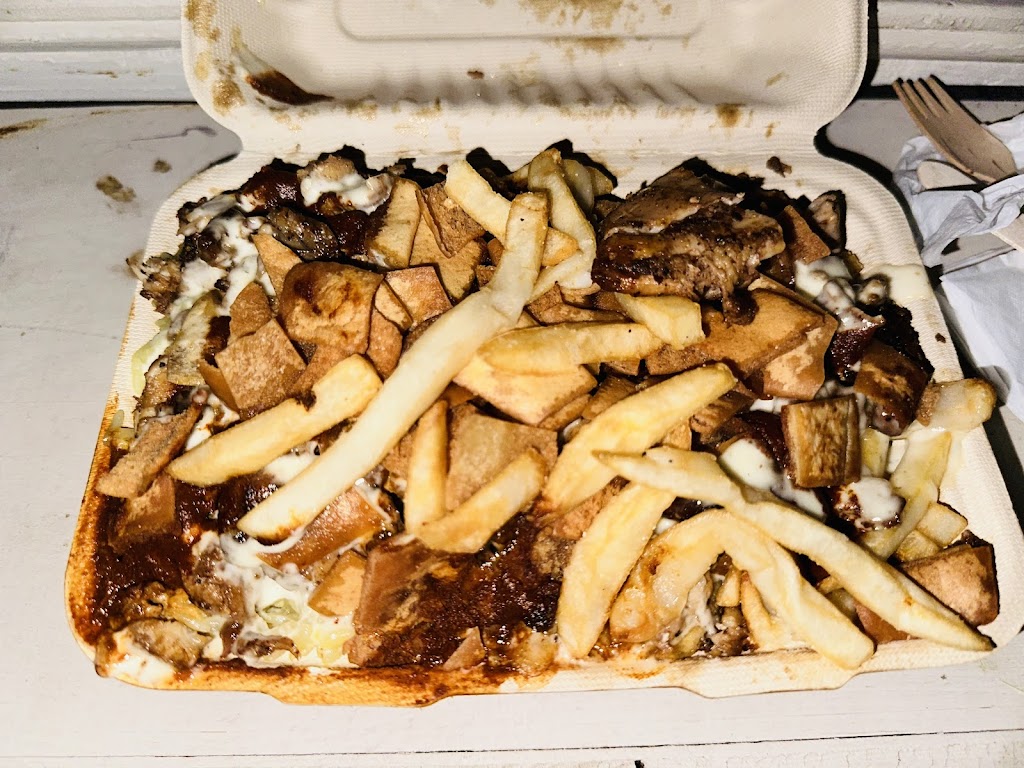 Ordered the shawarma (lamb) poutine. Fries were very dry for some reason. Meat was ground lamb which I wasn t expecting - that s maybe the norm for this place? Typically I see the shawarma sliced style meat not ground. However, will give a point for portion size. Regardless, the fries were so stale/dry that we took a couple bites and tossed it out unfortunately. Maybe we just got a bad batch?
