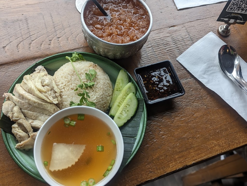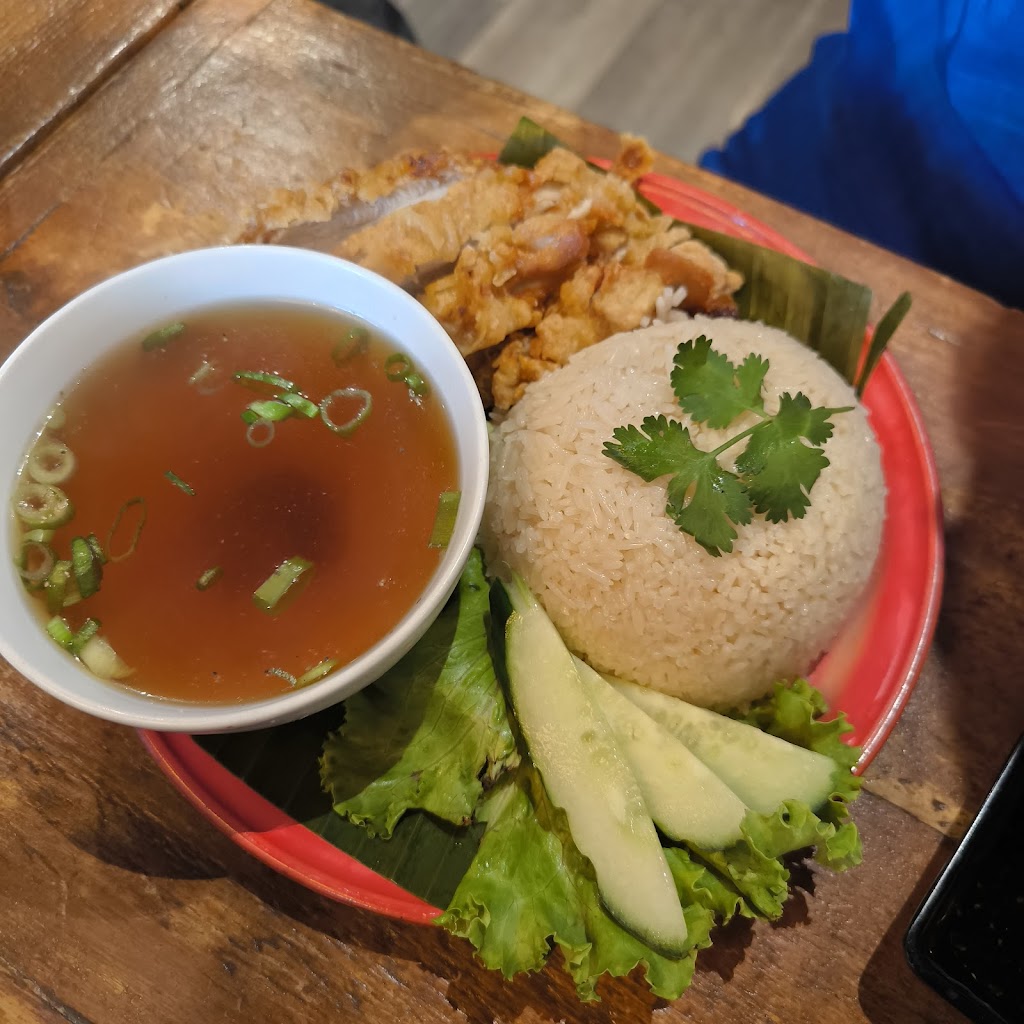 The food was overall really good. The steamed Hainan chicken and rice was excellent. We enjoyed the sticky rice dessert as well. Papaya salad was average, but the soups were interesting. The staff were really friendly and attentive. Had i been able to, would give the restaurant 4.5/5. One thing that brings it down is having to order up front and pay first. I get it, utilitarian, but it seems like a nice restaurant, so having to do a food court/canteen style seems off. However, they do bring the food.