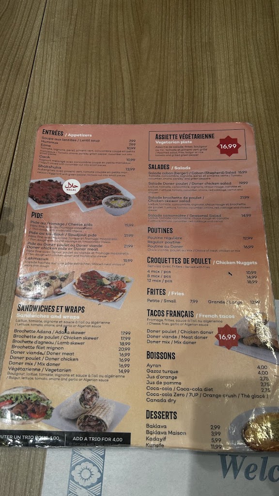 Everytime I came to this beautiful restau can t change it been a while the food it s just amazing with reasonable prices most things it s halal (the pide it s my favorite) cozy & clean terasse to chill with freinds the owner it s generous he s sell a free tea for everybody the server salma it was so nice everytime i became she help me to take good choices