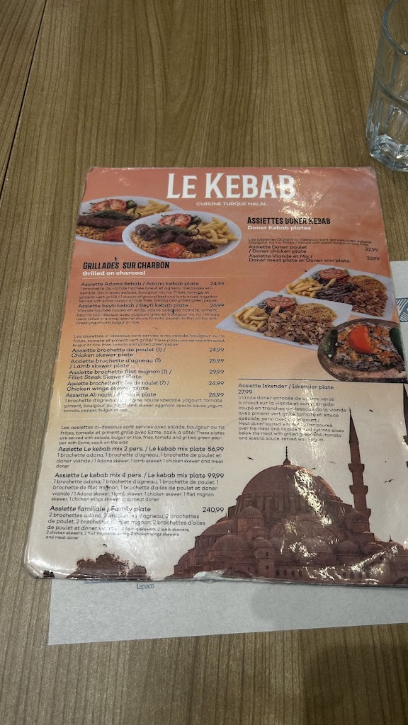 I recently dined at Le Kabab and it was an unforgettable experience! The skewer kabab, served with rice, French fries, and a fresh salad, was absolutely delicious. The kabab was tender and flavorful, perfectly complemented by the fluffy rice and crispy fries. The salad added a refreshing touch that rounded out the meal beautifully. The atmosphere at Le Kabab is cozy and welcoming, making it a perfect spot for a relaxed meal with friends or family. The staff were friendly and attentive, ensuring that we had everything we needed. I highly recommend Le Kabab for anyone looking to enjoy authentic Turkish cuisine. I can't wait to return!