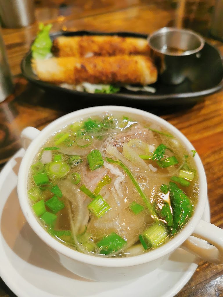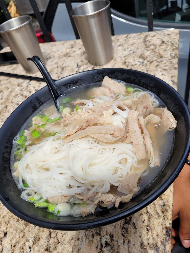 Good tasty pho, nice interior and clean bathroom. Newer establishment and price is a bit elevated but good quality nonetheless. We got the vegetable broth shrimp pho. Super tasty and staff are very nice people.
