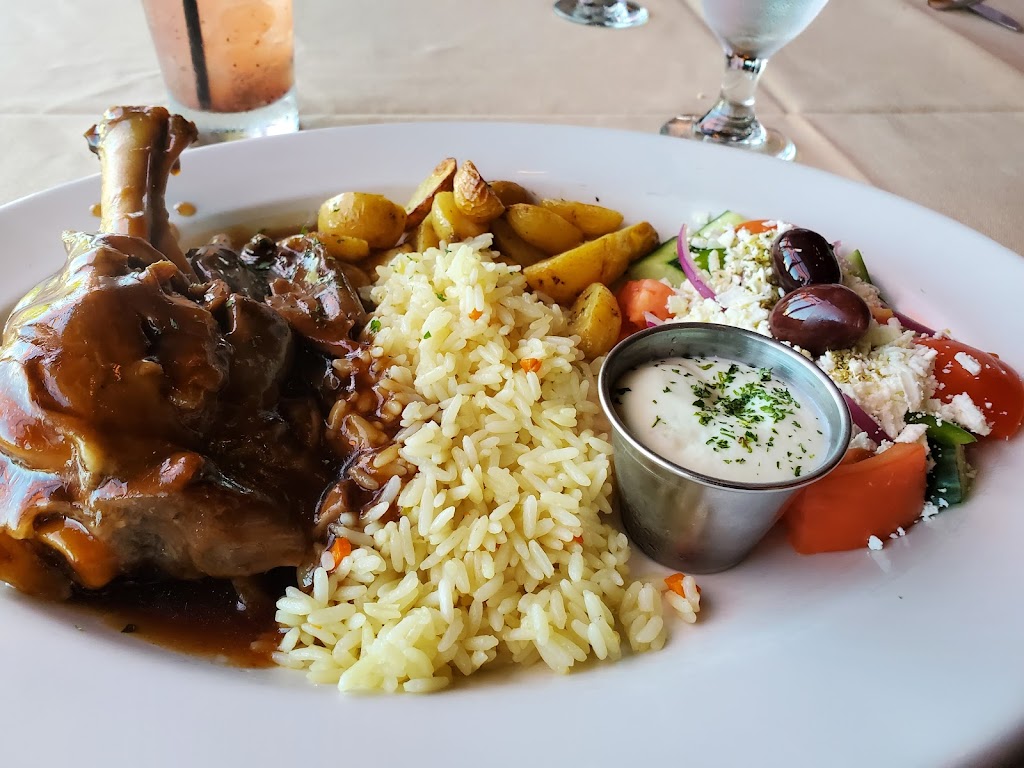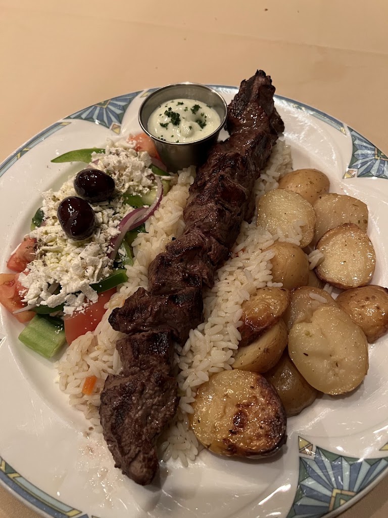 Delicious beef, and amazing lemon potatoes! A bit pricey but a really good Greek restaurant