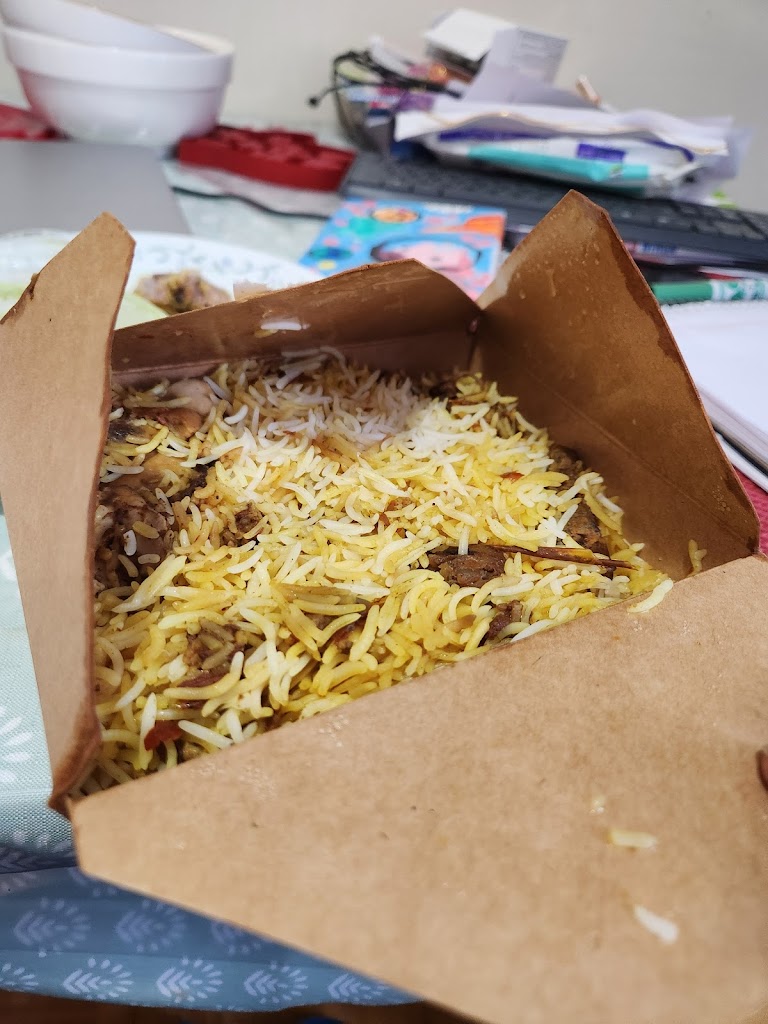 Ordered the goat biryani today. It was delicious and a bit spicy. Loved it.