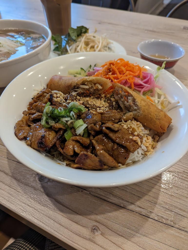 We got the pho and a pork vermicelli! I think flavour/ food wise it is all very on par with other Vietnamese places in Ottawa. The pork was a little on the tougher side and the iced coffee was a bit lacking for me. But overall I would be happy to come back!