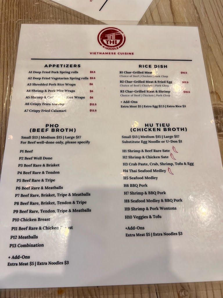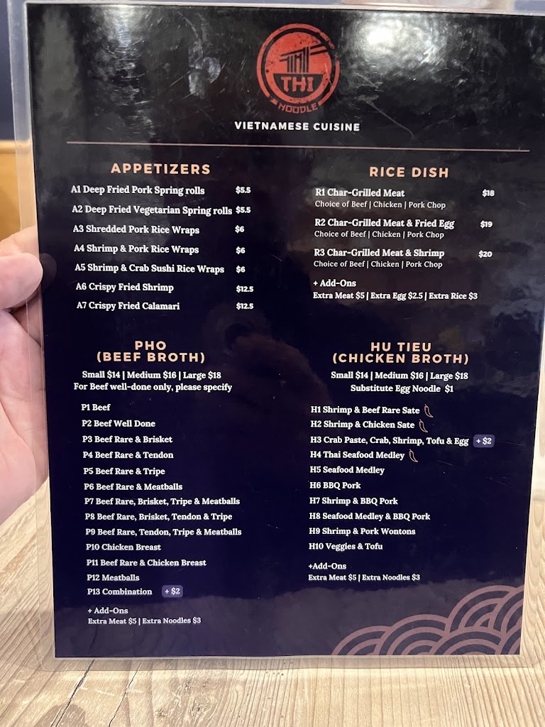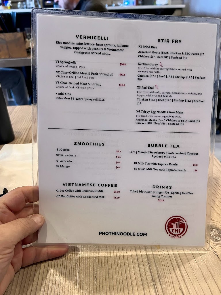My wife and I had a delicious quick dinner in mid-December 2023 at the Ph Thi Noodle Soup Restaurant. While we had been there several years ago as well, I can say only positive things from our last visit. The restaurant is bright and clean; and the staff at the front desk was really friendly. The food really is top-notch: the spring rolls were crispy, and not too greasy. The soups (menu item P5 and P11) were both outstanding. The Ph broth was balanced: not too salty, not greasy, no residue at the bottom of the bowl and with a delicate sweetness. Simply put: delicious!! Whenever I want Vietnamese soup, I will now go there and I highly recommend this restaurant.