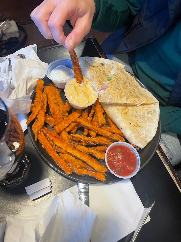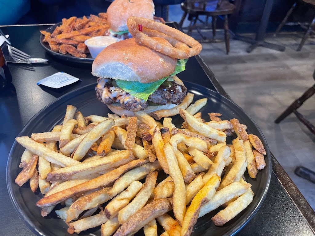 Patio has a great vibe!! Nice big tables if you have a group. Fries are delicious, prices are reasonable and the portions are great.