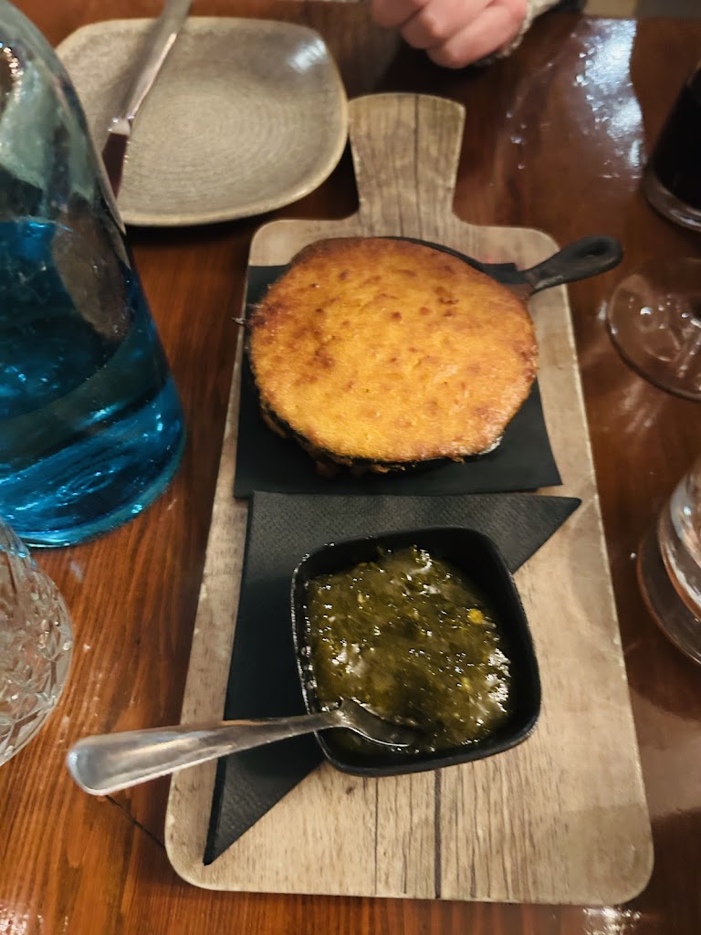 My rating is slightly higher thanks to the cornbread it really saved the night. I visited with my boyfriend and waited 40 minutes just to get seated at the bar. Then, it took another 40 minutes to receive two incorrect drinks. Five minutes later, we finally got the drinks we had originally ordered. At this point, we noticed the same issues happening with all four tables around us: long waits for food and drinks, and when the food finally arrived, it was incorrect. This was at 9:30 PM well past the dinner rush. When our food arrived, the portions were very small, though the taste was decent. After the server handed us the dessert menu, we waited another 30 minutes to place an order but eventually gave up and just asked for the bill. The hostess, unfortunately, was unaccommodating, rude, and unprofessional when we inquired about getting a table instead of bar seats, especially after waiting 40 minutes. Overall, not the experience we were hoping for.