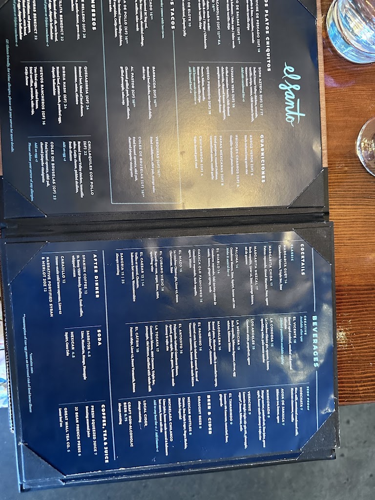 I've been to El Santo a few times. The food is great. The drinks are great. The service is great. The owner was present and friendly. The menu is clear, interesting, and makes me want to come back again. I had a special experience there last night. Kudos to the team for the great service! 5 stars.