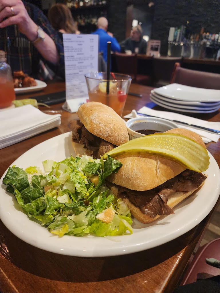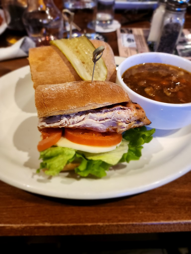 Stopped for lunch, had the beef dip + soup. Good value, service and food. The soup had a bit more salt and the coffee stronger than I would prefer. But then, even cheese can be too salty for me. Recommend.