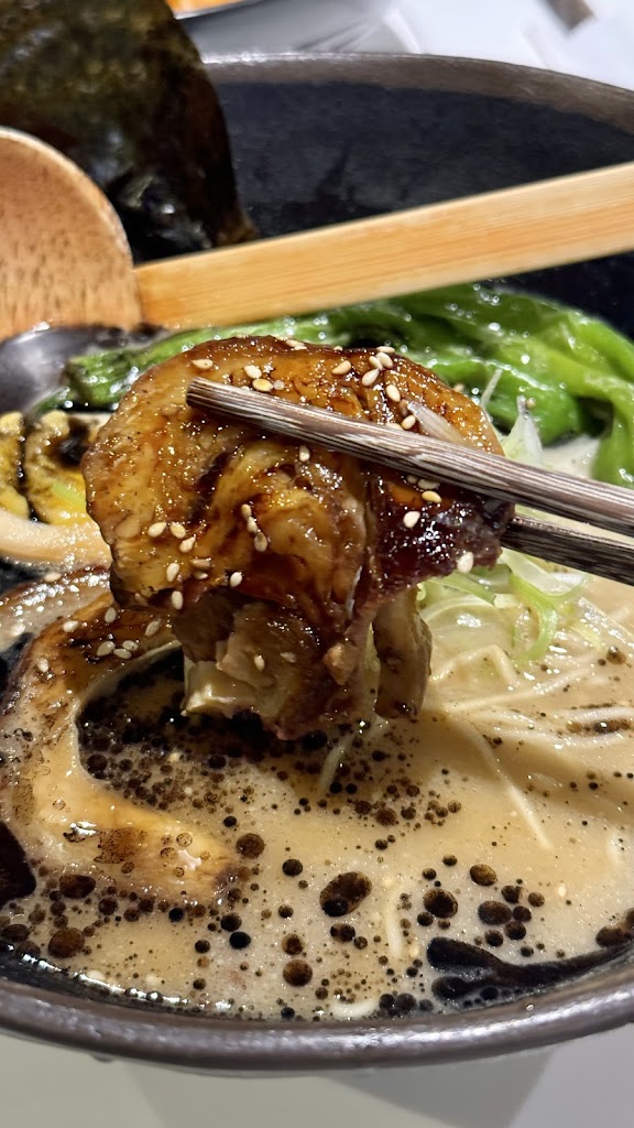 We tried the shoyu and the kuro tonkotsu. Both bowls were plated sloppily, had a mass of unfolded overcooked noodles in the center and lacked flavor. The chashu pork was incredibly tiny and were glazed with teriyaki sauce which was its only source of flavor and didn t mesh with the bowls. We loved the story and were excited to try a new ramen shop from the michelin guide but it just wasn t quite what we were expecting.
