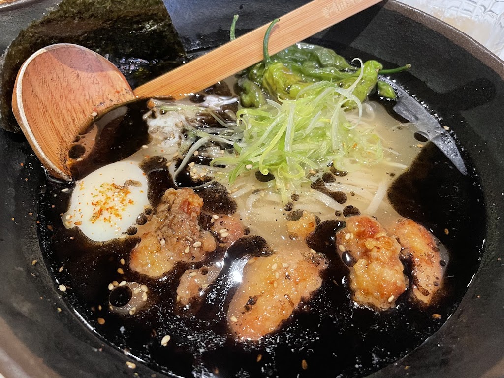 Jin was a great time the ramen broth was really flavorful! We also had the peppers and karaage chicken which was also really good.
