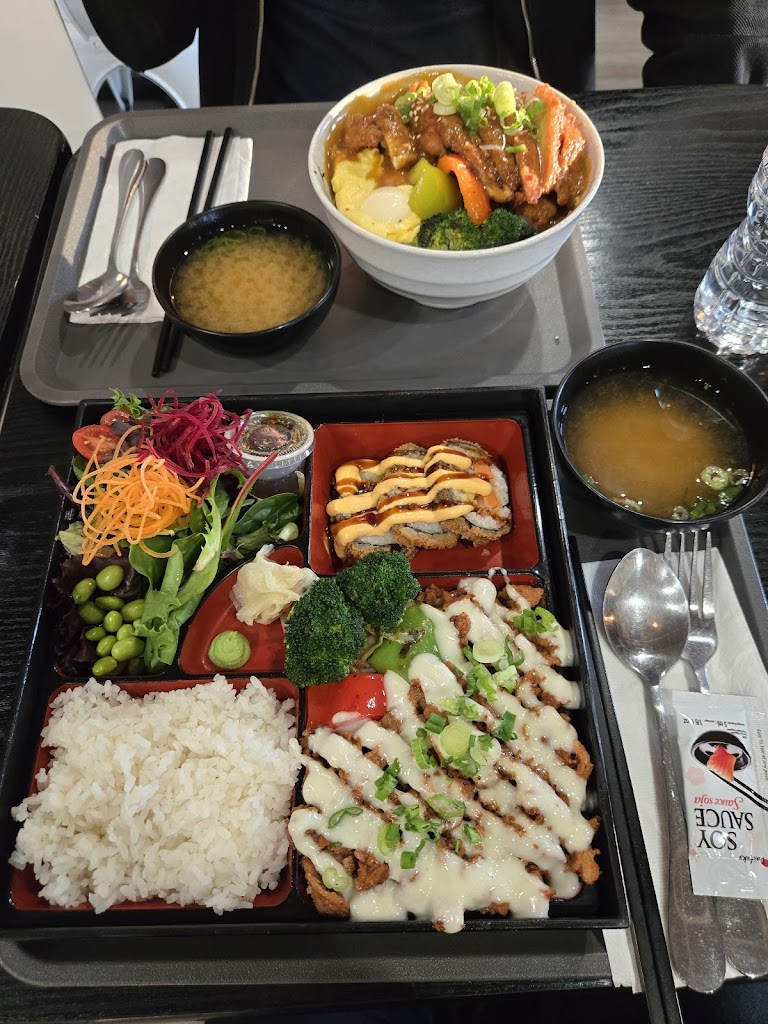 Very friendly staff. My husband got the Pork Katsu Curry and I got the Spicy BBQ Pork Bento box. My husband says he had a very generous portion, full of flavour and good mix of meat, vegetables and rice. Everything in my bento had tons of flavors and different textures. It also had a great portion and a healthy mix of everything. The sushi was really crunchy and tasted great. Thank you!